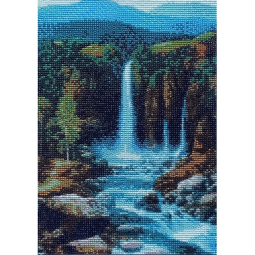 Adaugă un strop de culoare și serenitate în spațiul tău cu această superbă lucrare realizată manual în tehnica „diamond painting”. Tabloul redă un peisaj spectaculos cu cascade în trepte, înconjurate de o grădină luxuriantă, plină de flori viu colorate și vegetație bogată. Fiecare detaliu este compus din mii de pietricele strălucitoare, aplicate cu grijă pentru a crea un efect vizual tridimensional și vibrant.